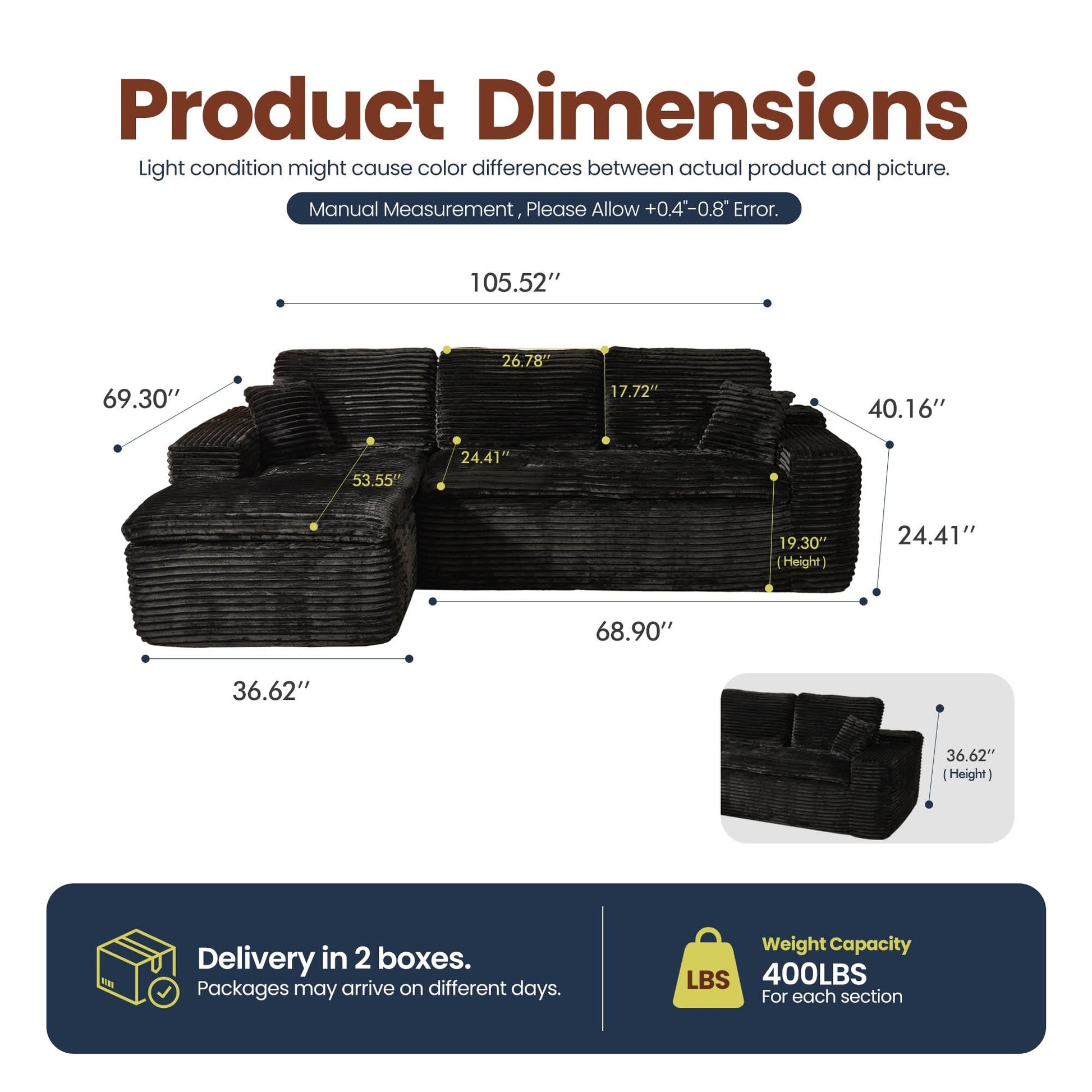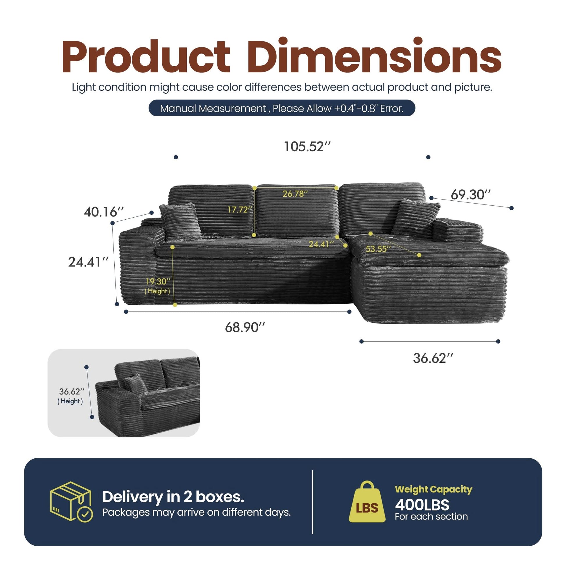 OVIOS 105" Modular Sectional Sofa with Chaise,Deep Seat Cloud Couch, Modern L-Shape