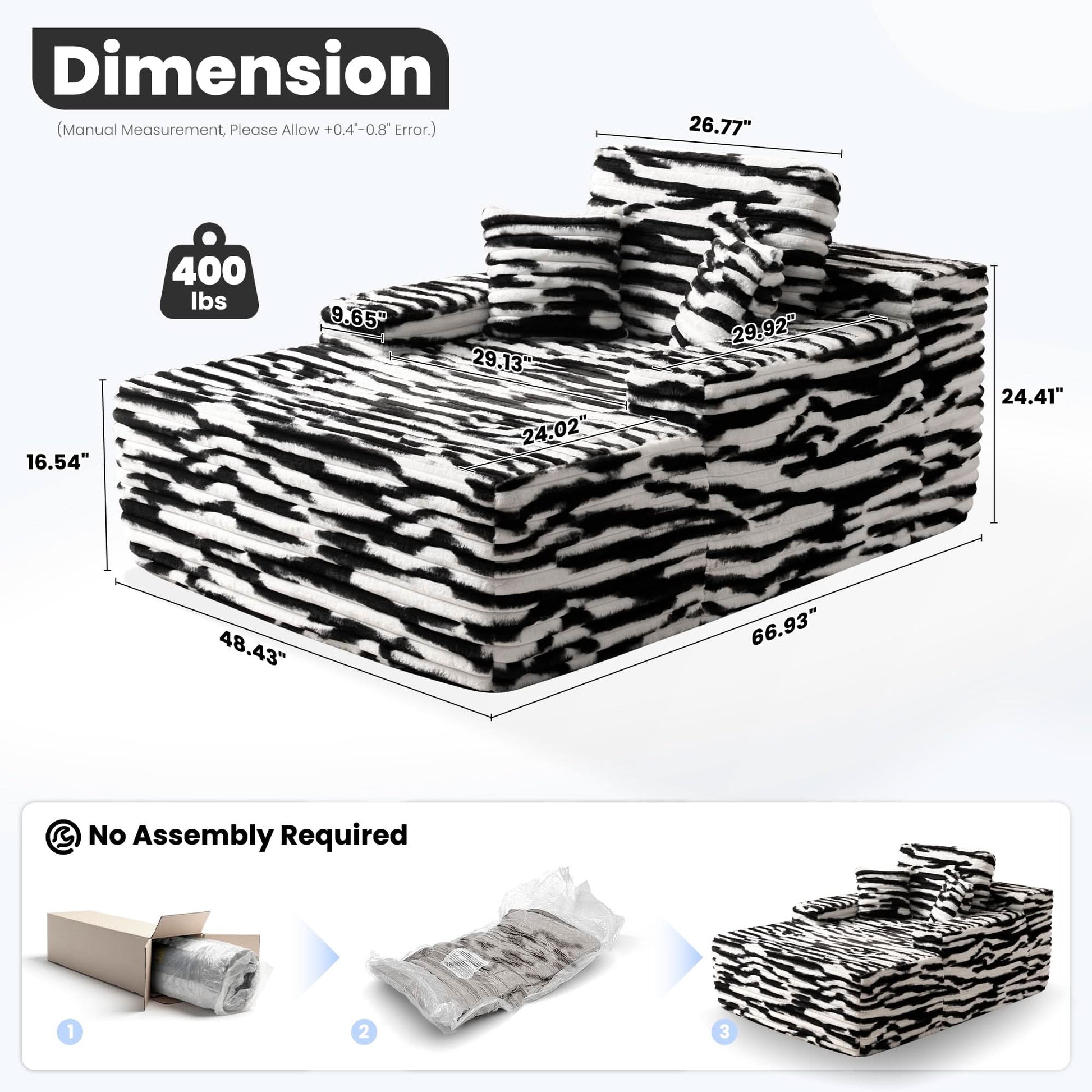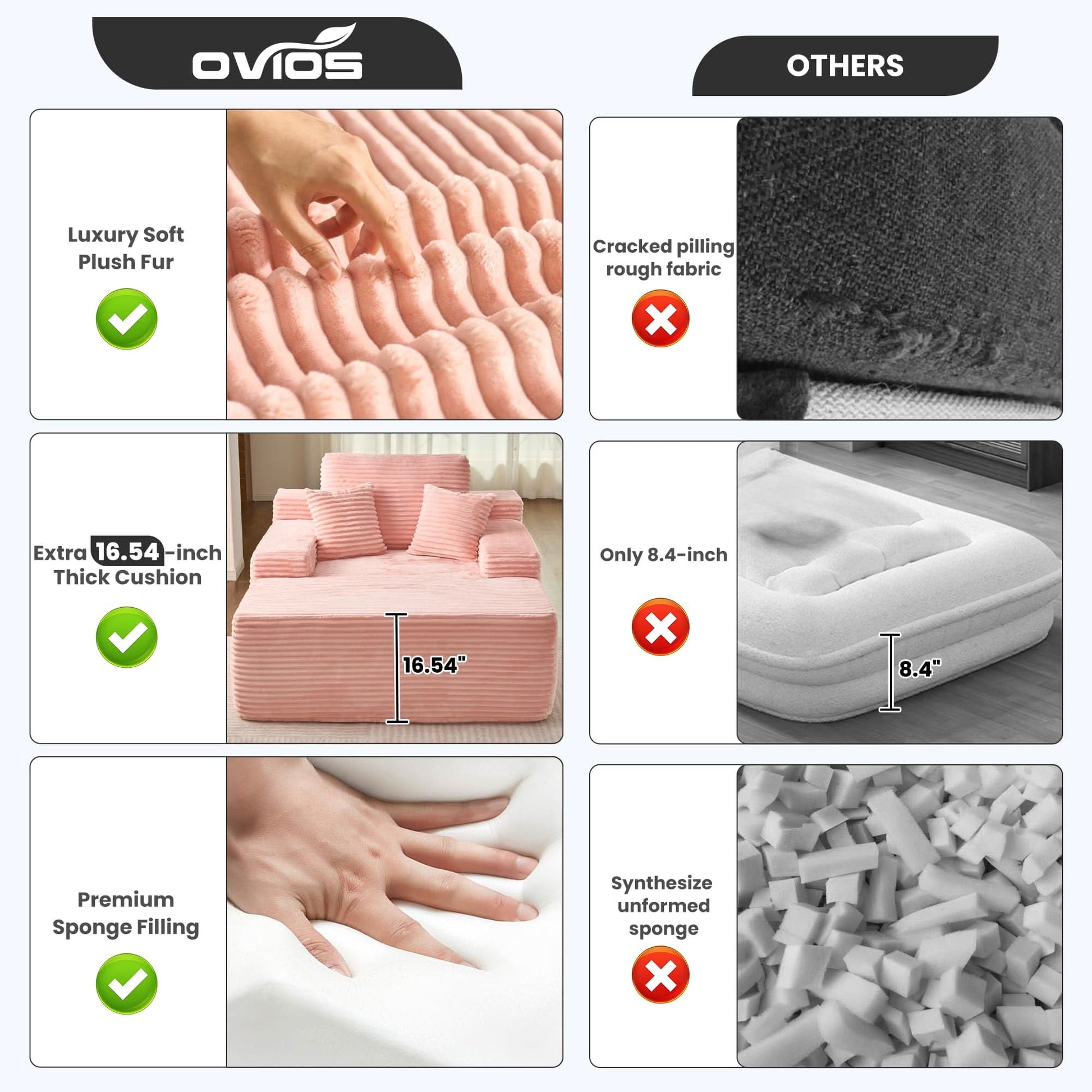 OVIOS Boneless Chaise Lounge,Luxurious Faux Fur, No Assembly Required