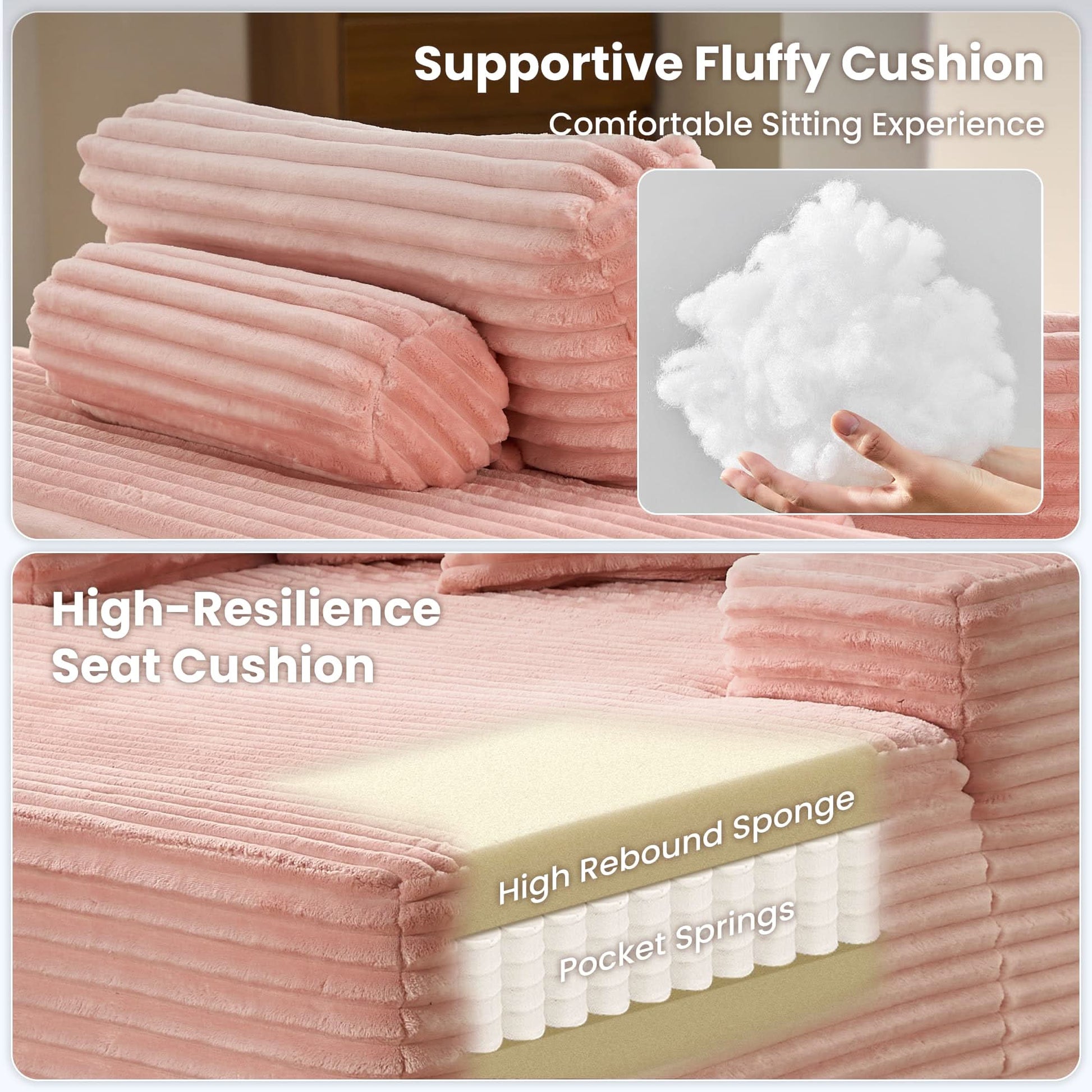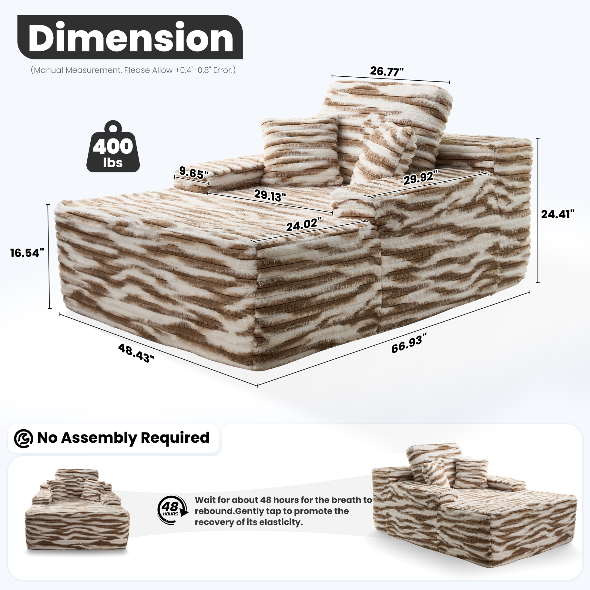 - Luxurious Faux Fur Fabric: Swathed in premium faux fur fabric with a soft striped texture, this lounge offers an indulgent feel and elegant appeal.