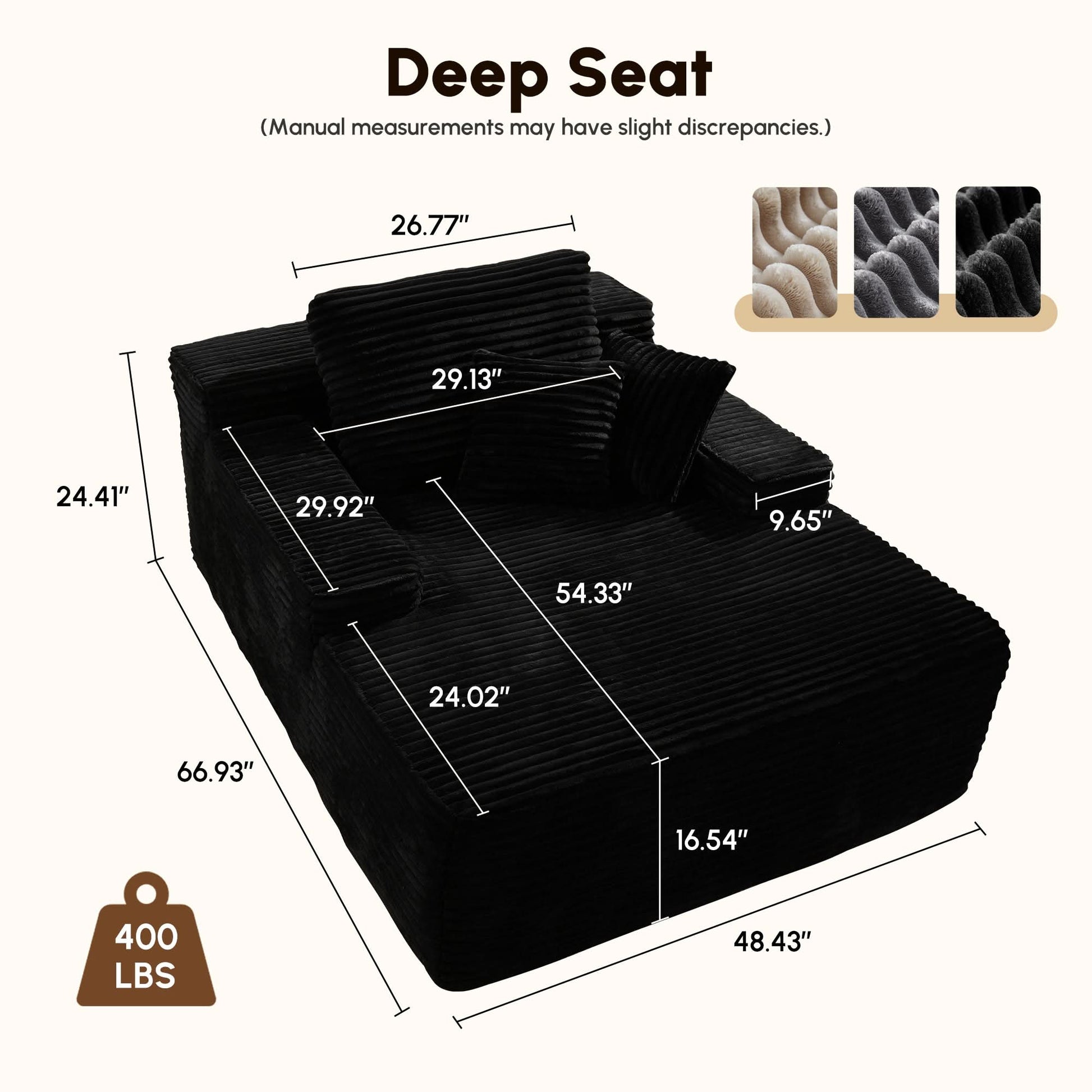 - Spacious and Comfortable: With dimensions of 66.93" x 48.43" x 24.41" and an extra-deep 47-inch seat depth, this lounge ensures ample space for ultimate relaxation. The 9.65-inch wide armrests and plush back pillows enhance your comfort.