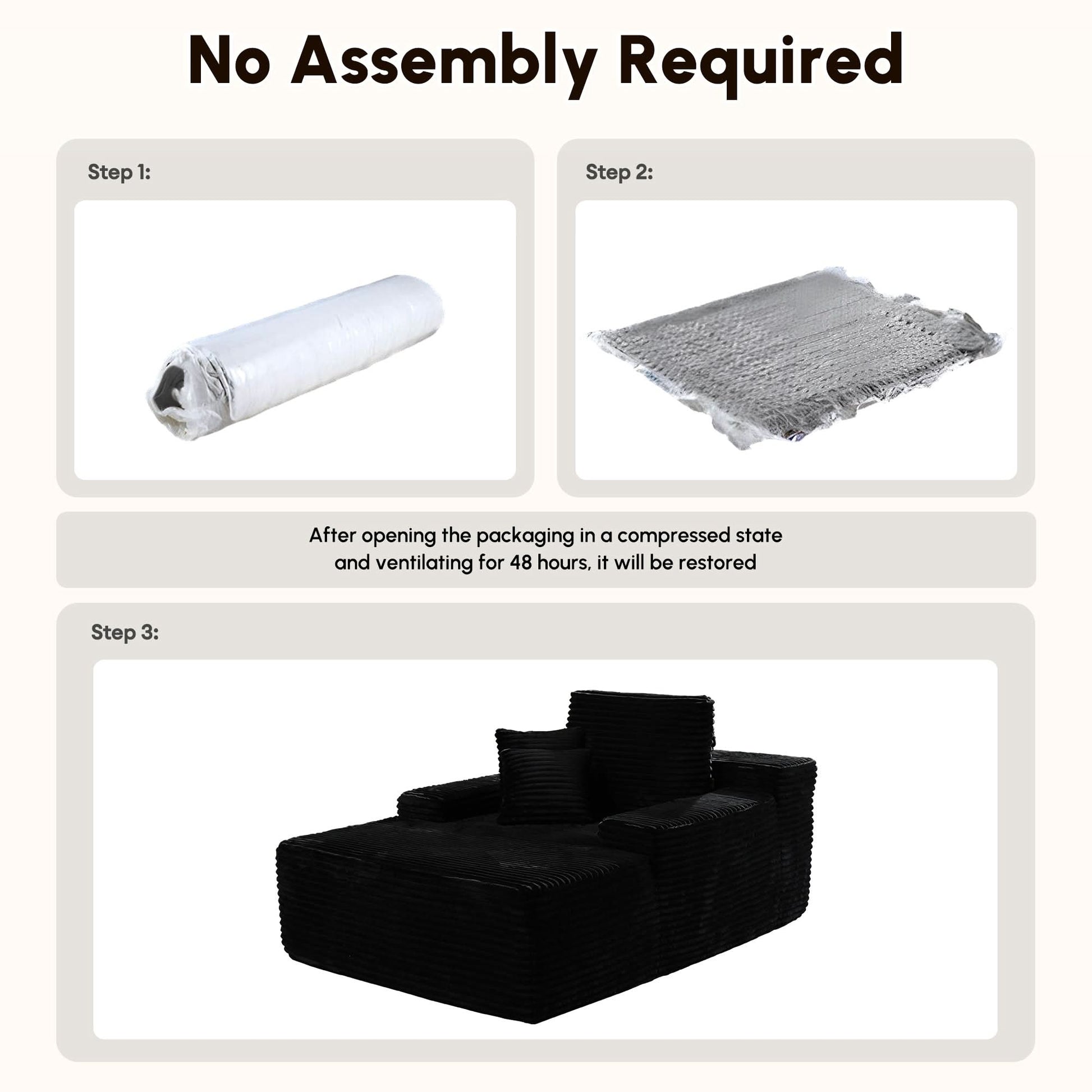 - No Assembly Required: Enjoy hassle-free setup—unbox and let the chaise lounge regain its shape within 72 hours for full comfort.