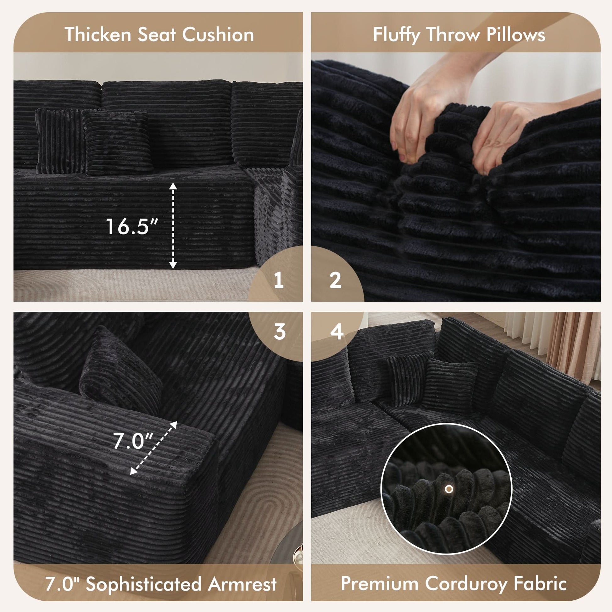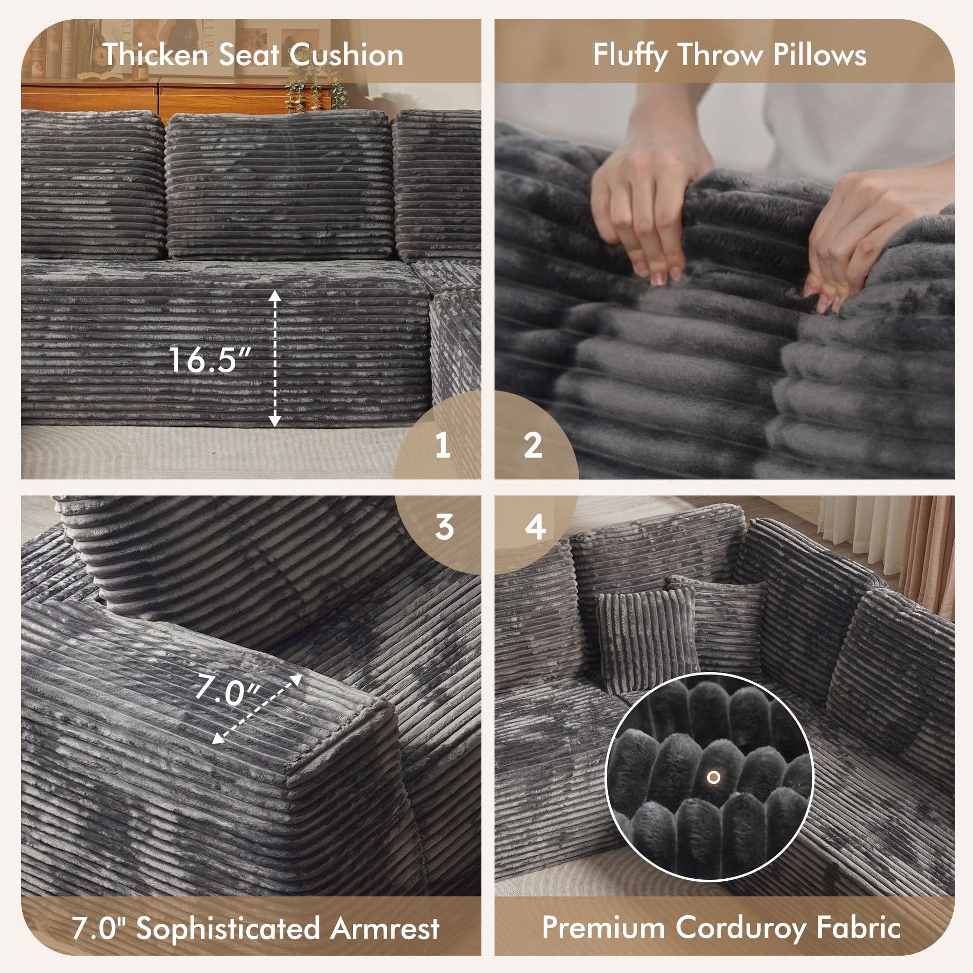 OVIOS L-Shaped Cloud Sectional Sofa with Chaise - Plush Corduroy, Memory Foam & No Assembly