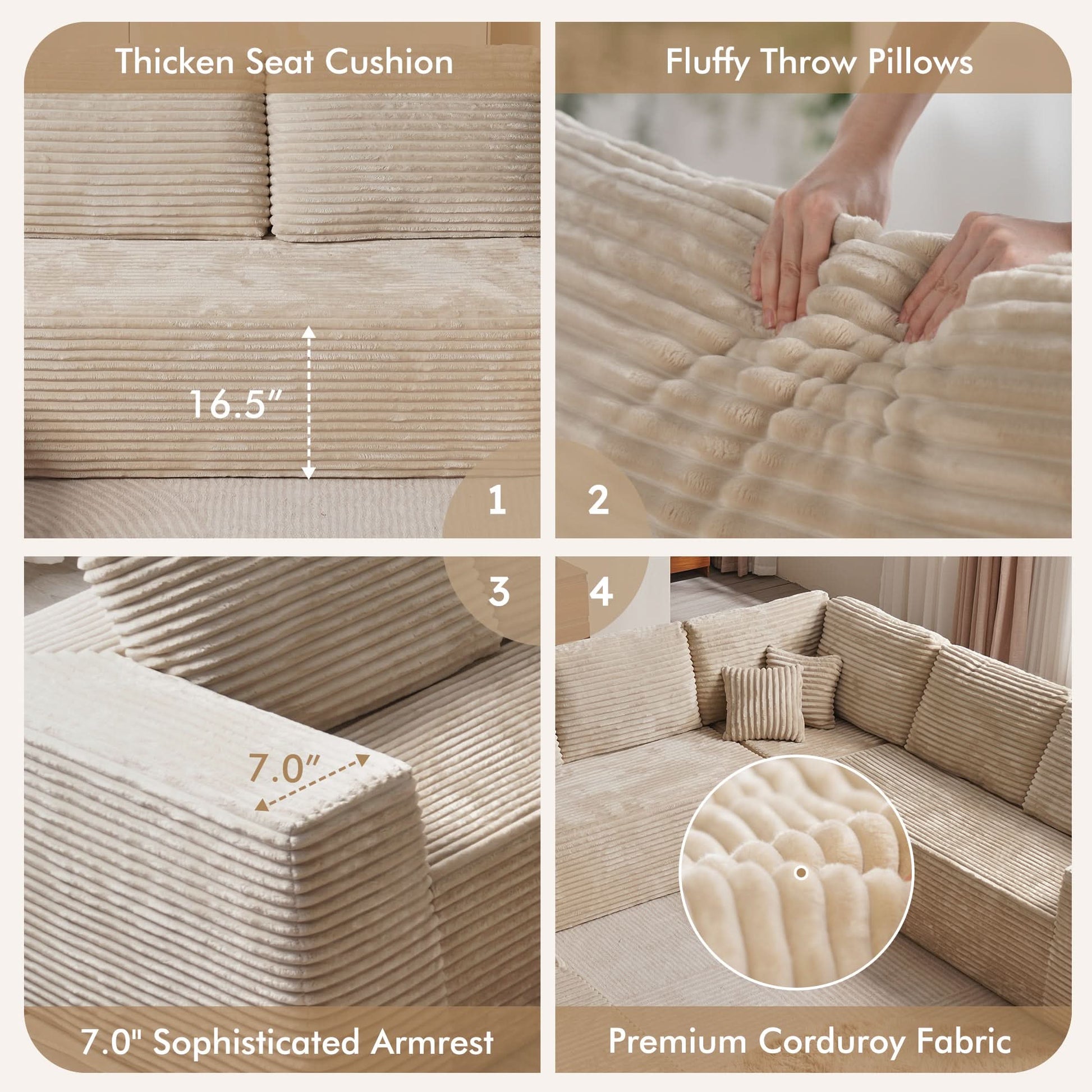 OVIOS Modular Cloud Sofa with Memory Foam & L-Shaped Chaise,Corduroy Fabric Sofa, No Assembly Required