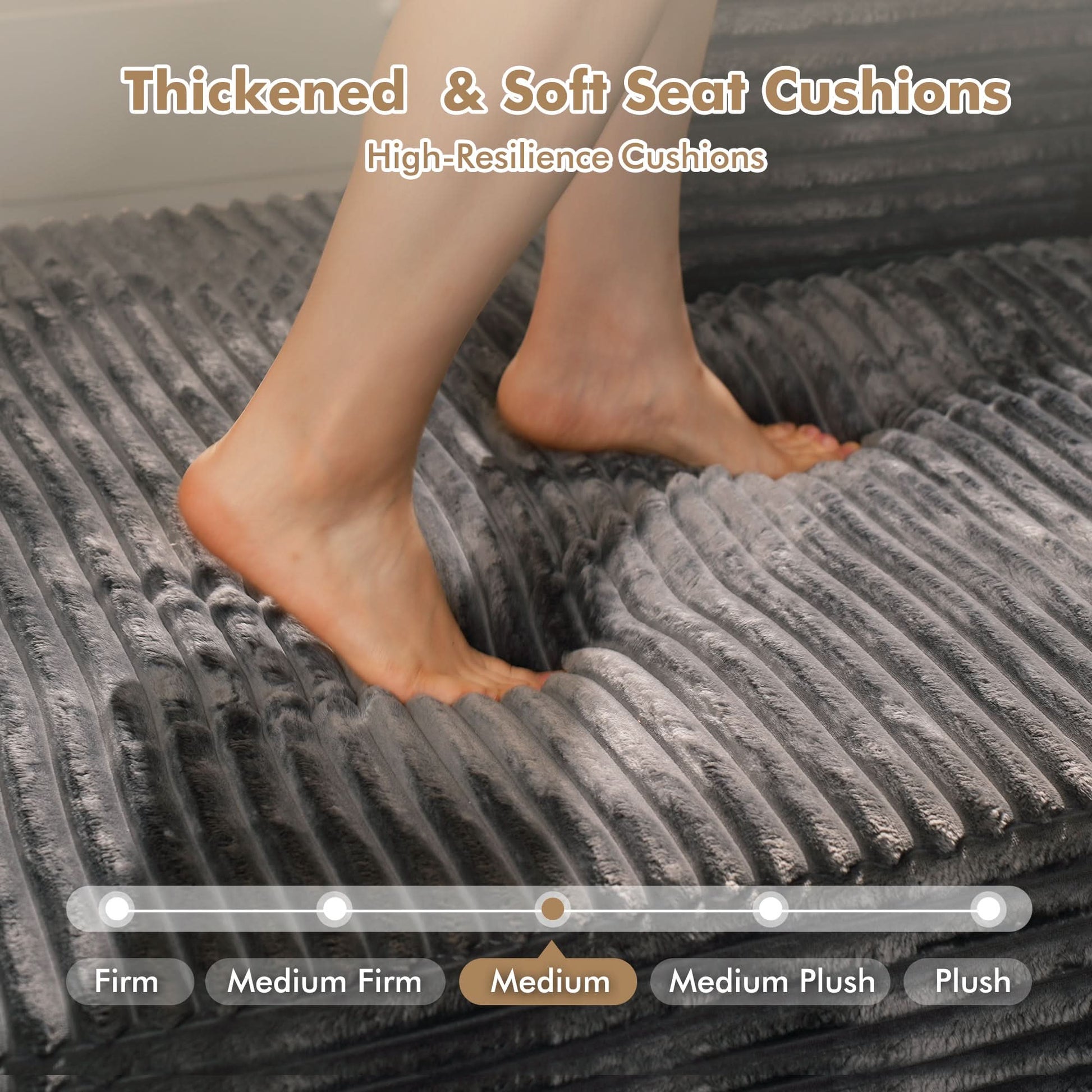 ● Sophisticated Modern Design: Upgrade your living room with a plush corduroy sectional sofa. Its sleek, timeless design with clean lines and striped accents adds a sophisticated touch to any decor.